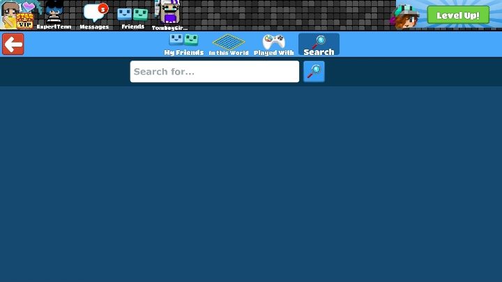 Click the magnifier icon under the "friends" tab. After that, another window will pop up, where you can enter the nickname of your friend to find him or her in the game.