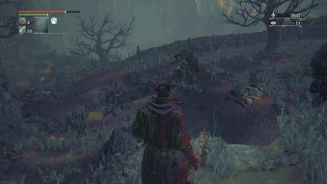 When you will be in front of the Grand Cathedral choose the path on the left. Following this path you will get a Bloodshot Eyeball (from the first corpse you will pass by) and the Brave Hunter Badge (from the second one). Pass the tunnel and get to the clearing.