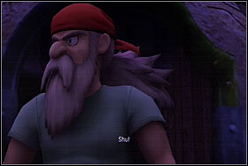 When you first take control over Shu, go left and head down the path. You'll see a title screen and an intro. When you control Fushiro, talk to Jiro's parents (they're right on the balcony in front of you). Another cutscene will commence.