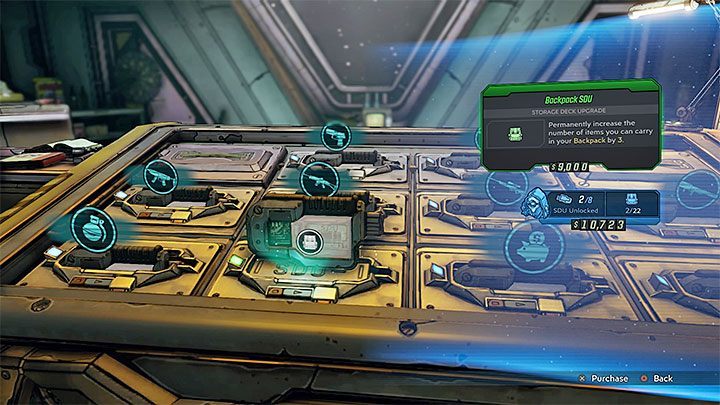 - Backpack SDU - This is one of the most important improvements. You can carry more items in your inventory. Developing this position will make it easier for you to collect the loot. You won't have to leave some things behind or go back to the vendor machines that often in order to sell unnecessary loot.