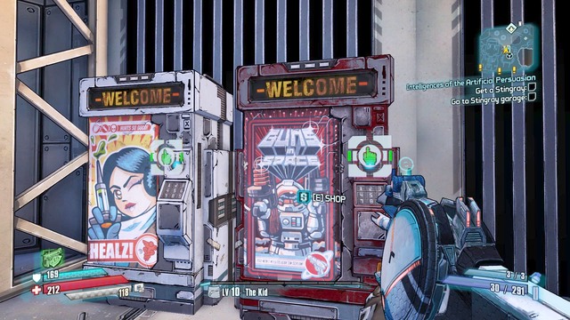 In Pre-Sequel, there also are stores. These are vending machines and NPCs, where you can buy arms. In the machine on the left, in the screenshot, you can heal, but a shield and Oz Kits. From the one on the right, you can buy weapons and ammo. In these stores, you pay with dollars. Each one of them also has an offer of the day. Each such offer provides you with a rare item that is better and, which follows, more expensive than the remaining ones on offer.