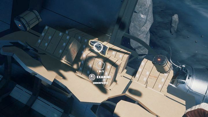 Notes: the underpants in question can be found in the module located behind the first base; you won't see it at first because it is located behind the asteroid. On board there are many stillages with parcels. The underpants are floating in air right next to them.