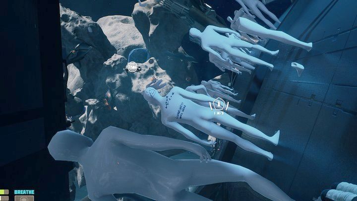 Notes: Most of the coffins in this area emit orange light. Your spacesuit AI will say something at each of them, facilitating counting.