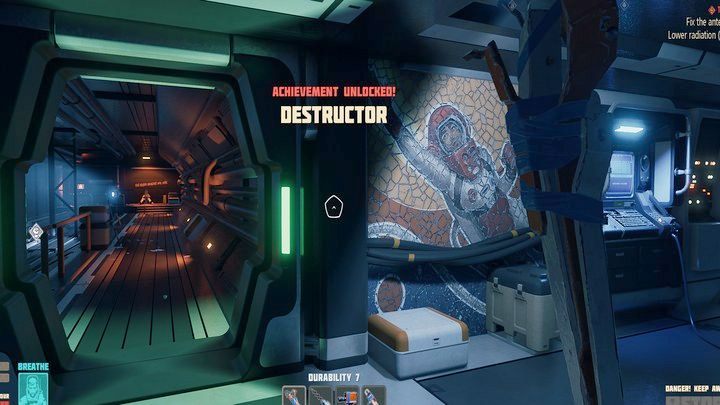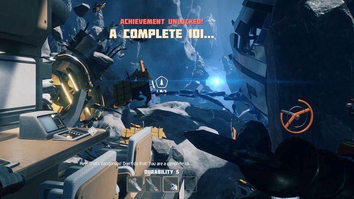 Notes: at the beginning of the second chapter, still on the captain's bridge, you will be forced to use a drill to scare and force the AI of your suit to speak. Just do it around two or three times. If you keep pushing, you'll die (but the suit will bring you back to life). This is the only time you can get this achievement.