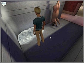 Go to the place that you see on the picture [#111] and push the button on the control panel [#112].