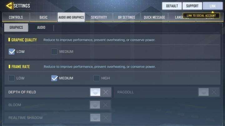 If you have problems with CoD: Mobile running smoothly, you can tweak the settings to fix this issue. Click the graphics tab. There, reduce the number of frames and reduce the quality of graphics.