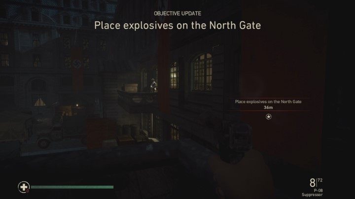 Your task is to place two bombs. Reach the mission marker through the balcony presented in the screenshot.