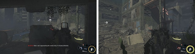 After participating in the first battle in this mission, enter the room at the end of the building, on the right side.