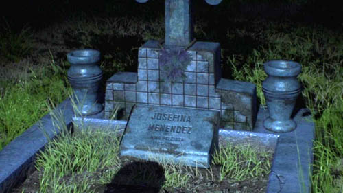 Menendez, disguised as an officer, enters Woods's room after killing the guard. A short conversation develops between him and Woods. The flashback shows what Josefina's face really looked like after the fire.