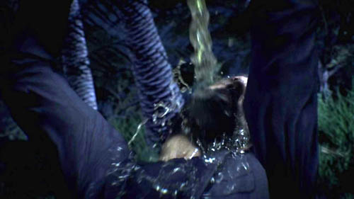 Menendez says that he hasn't left her and that it's Woods who took her away from him. He takes out the medallion, slits Woods's throat and puts his body on the bed.