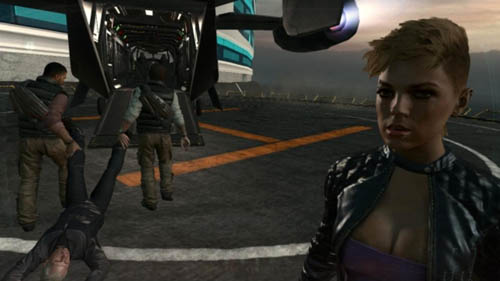 If you manage to run up to him, you'll have to kill him. Karma will be saved. You'll talk to her at the end of the mission, when Harper and Salazar will be bringing DeFalco's body on the plane (picture above). Mason will say that without Karma Menendez won't be able to work Celerium out. Karma will disagree, saying that it will only delay him, but he'll get what he wants anyway.