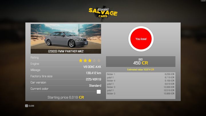 Car Auctions are available from Level 15. They allow you to buy used cars for your collection or for parts.