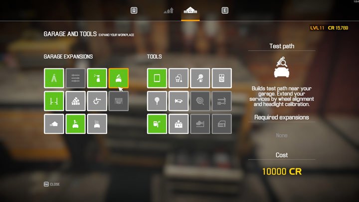 This page of the Car Mechanic Simulator 2021 game guide describes the garage equipment. We present all available options to expand the garage with more objects and tools.