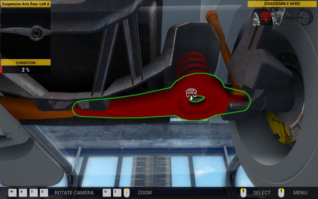Your regular customer has another order for you - this time defects are caused by his wife who trusted the satellite navigation and was guided to damaged bumpy roads. It caused serious harms to the car's suspension - so you have to perform the complex maintenance and repair of that subsystem. The order begin with performing the Diagnostic Path test and then turn on the Show parts conditions mode. You will see many parts that must be immediately replaced: