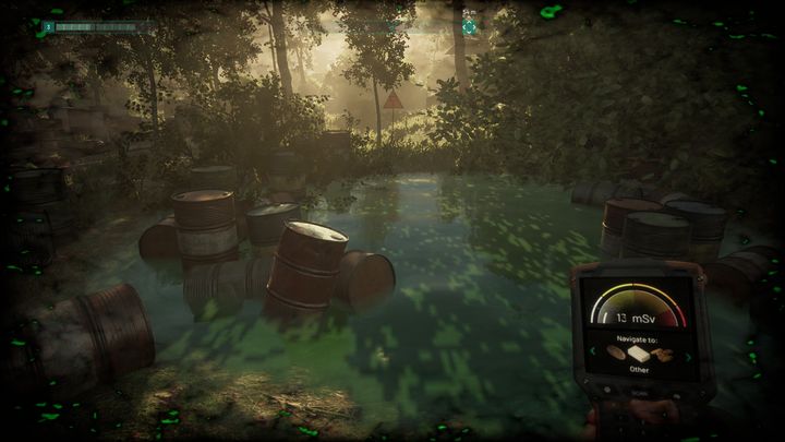 When you get to a specific location, it is important to move with the Geiger counter. There are points around the map where radiation levels are high. Staying near them for too long will negatively affect the health of the character. Therefore, you have to monitor the level of contamination constantly.