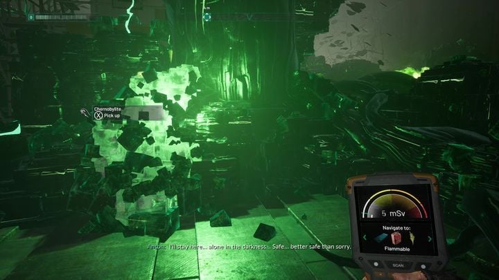 When you reach chernobylite, interact with it to trigger a cut-scene. After it, you will have to go through the portal.