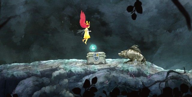 To find the chest, you have to come back to the location that you have been to in chapter 2. Once you cross the door that you left through, fly up. Open the passage with Igniculus, by pressing the button.