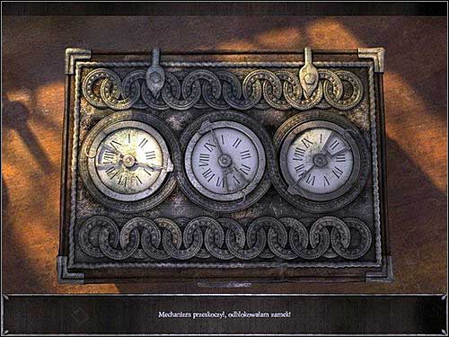Go to the bay - you have all the data needed to unlock the chest. Marcel said: storm (8 in Beaufort's scale), Jupiter (5th planet of the Solar System) and the number received from Claire (2 - the day they've met). Place the hands (starting from the left one) on 8 (click 2 times on the left side of the 1st clock face), 5 (4 times on the right side of the clock face, moving the pointer down as the hand moves) and 2 (1 time on the right side of the clock face). The way in which you turn the hands is irrelevant really, it's just important for the numbers to be in the "window" of each hand.