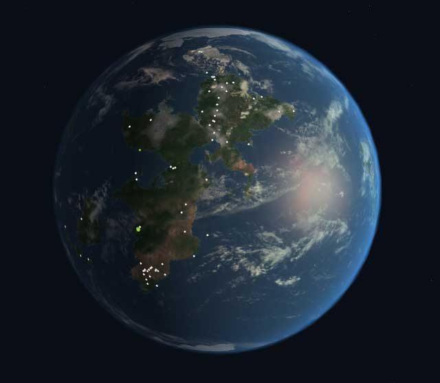 You select on the globe - click one of the white dots to see the description of the site which lies beneath it. You can choose among very diverse areas - from sandy beaches, islands, peninsulas and coast through plains dotted with hills, plateaus, river deltas and lakes to soaring mountains, deserts and cliffs.