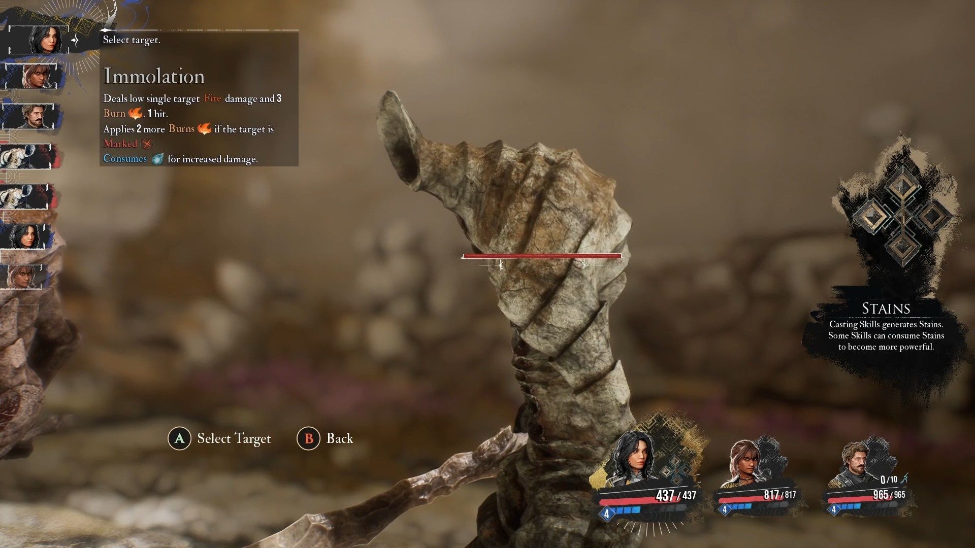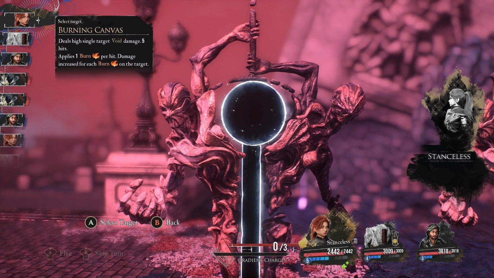 - Charm - Ballet casts a spell on one party member. The spell consists of three rhythmic explosions, of which only the third one will hit you. Listen to the rhythm of the explosions and parry it.