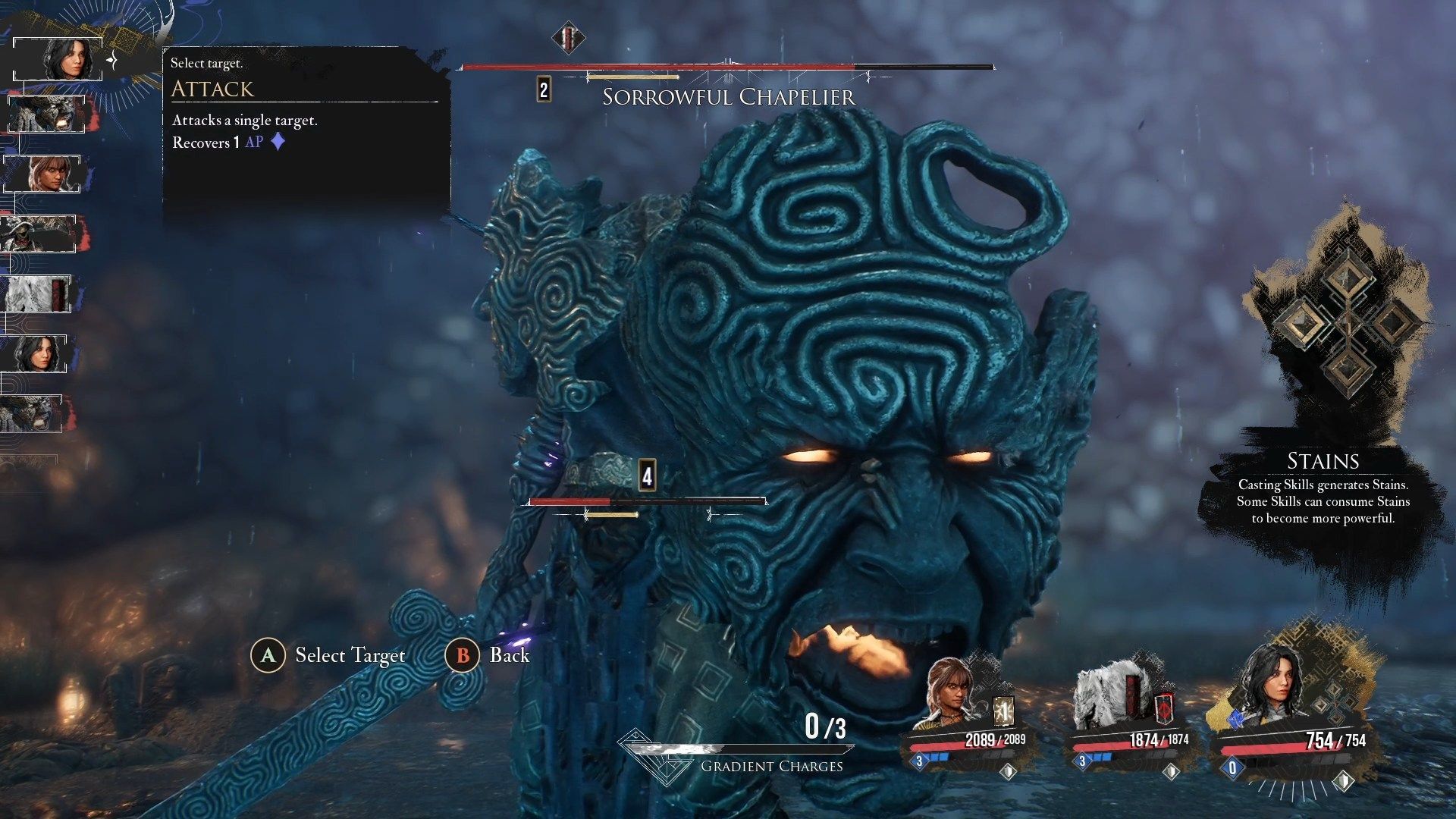 - Regular attack - Clair approaches a party member and deals two blows. Before each strike, its sword flashes twice in a steady rhythm. Parry to the rhythm - flash, flash, cut.