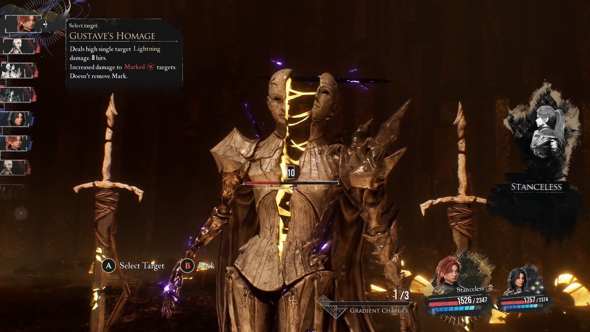 - Deadly blow - Ramasseur approaches you and performs a single gradient attack. Parry the gradient when the world changes color.