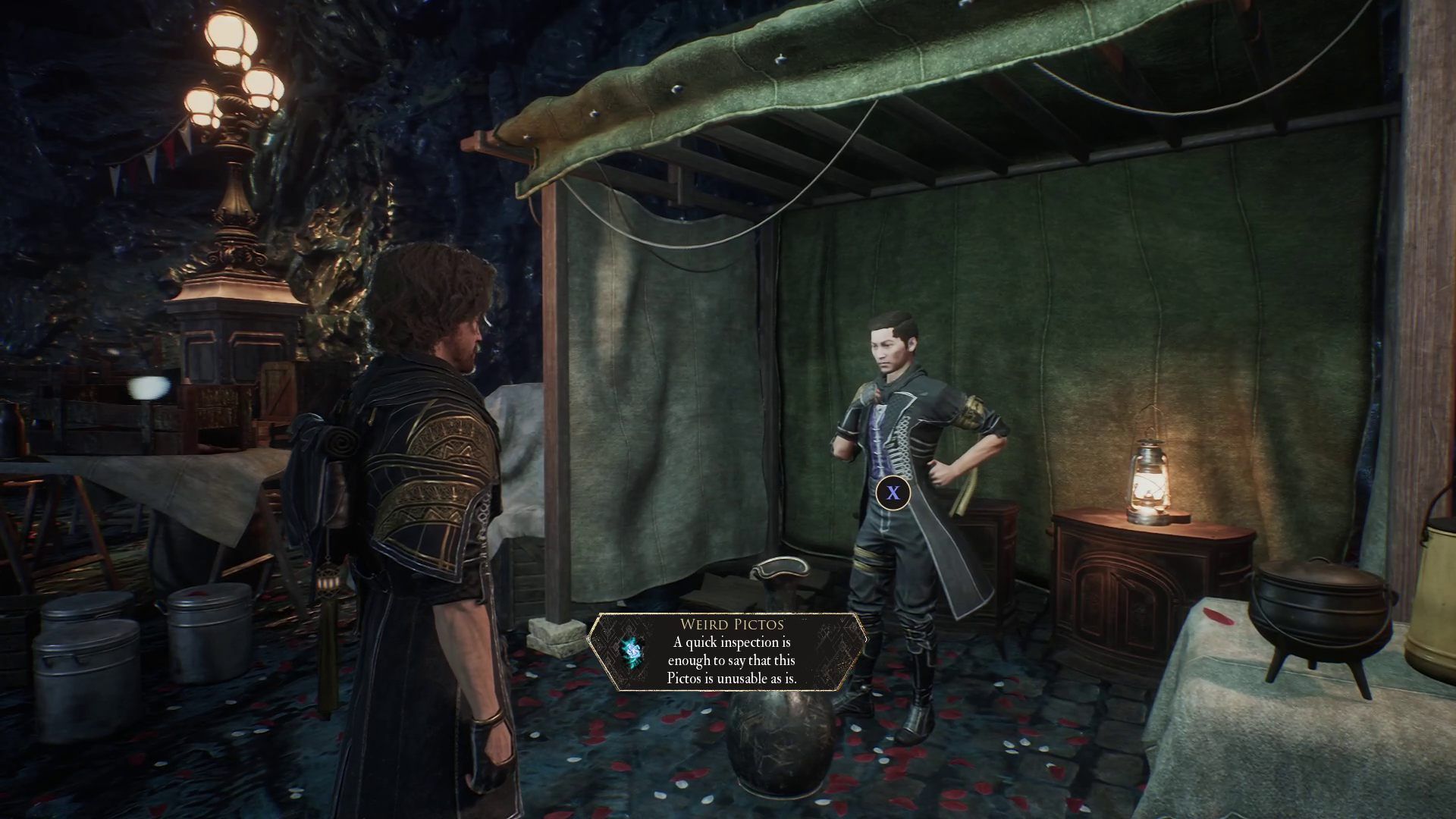 - Green stall - talk to Tom and exchange the token for Weird Pictos.