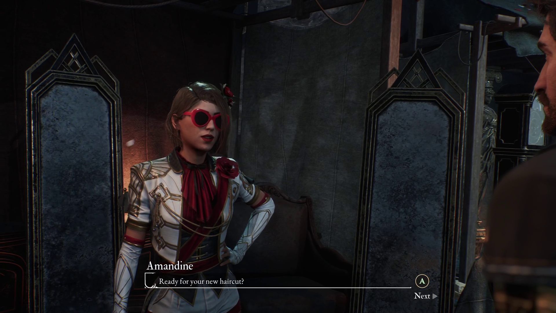 - Red - you will talk to Amandine and exchange the token for a new hairstyle for Gustave. You can freely switch between different hairstyles in the character screen.
