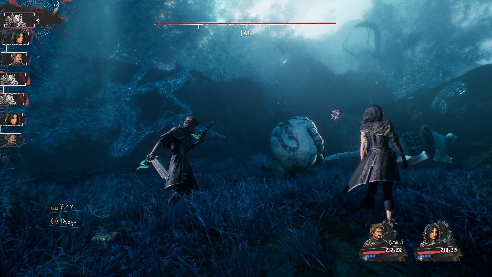 The Jar boss fight doesn't feature any unique mechanics; he has a lot of health and uses only one attack. He is resistant to physical damage and susceptible to fire, ice, and electricity. So, let Gustave focus on charging his arm through Lumiere Assault and using Overcharge (you will deal massive damage with it due to the boss's weakness to electricity) or on using the Marking Shot and buffing Lune, who will deal the most damage during this fight. Learn to avoid or parry the enemy's only attack, and you will defeat him in no time.