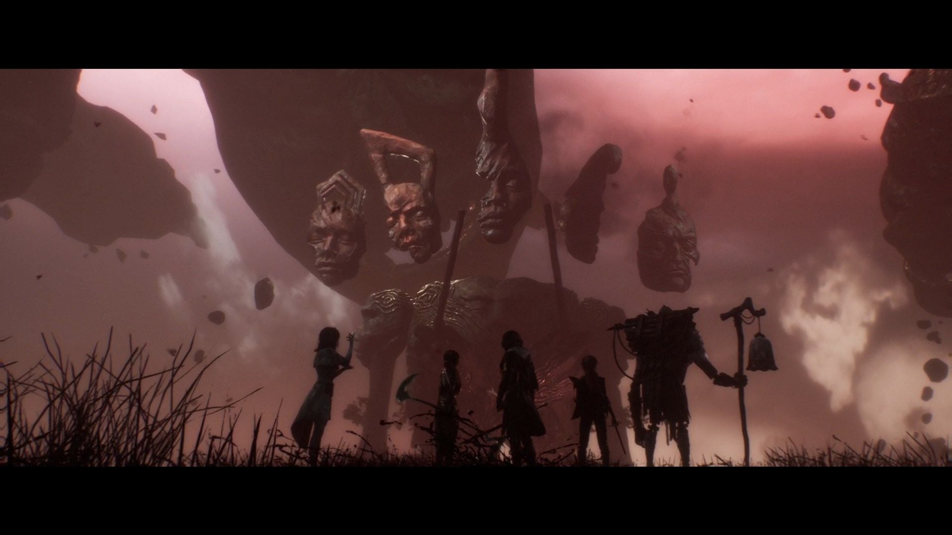 The first phase of the fight is not overly difficult. Your goal is not the giant standing in the background, but the mirror at the edge of the cliff. Boss attacks are easy to parry thanks to accompanying sound effects. Since the active mask is constantly changing, the boss's weaknesses and resistances also change with every turn. As you've probably noticed, each mask emerging from the mirror has glowing eyes. If you destroy these eyes with a shot from a ranged weapon, the mask will not be able to hide in the mirror and will be destroyed at the beginning of the boss's turn - Visages will no longer be able to use it.