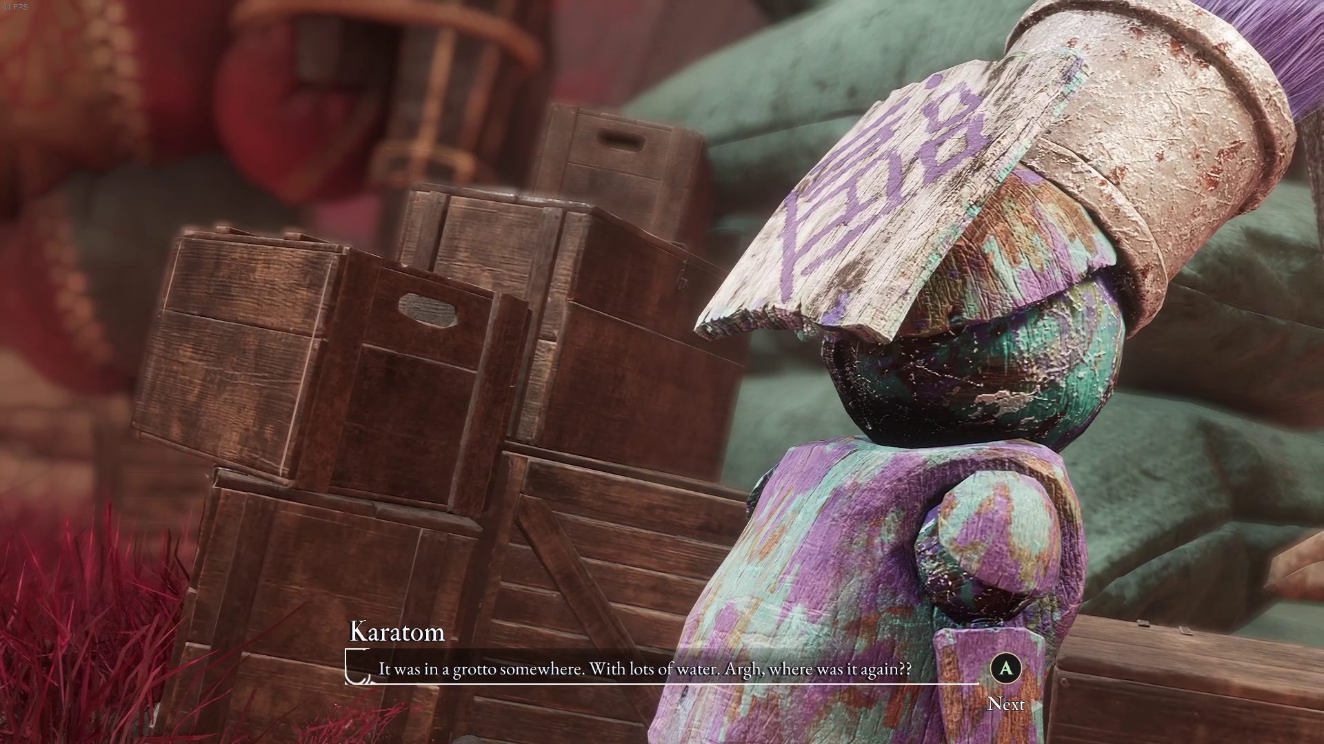 Talk to Karatom. During the conversation, he will reveal to you his plans to build another Ultimate Sakapatate. He will also ask you to find blue mushrooms, which will serve as material for producing explosives. The inventor will suggest that you should look for them in the flooded cave.