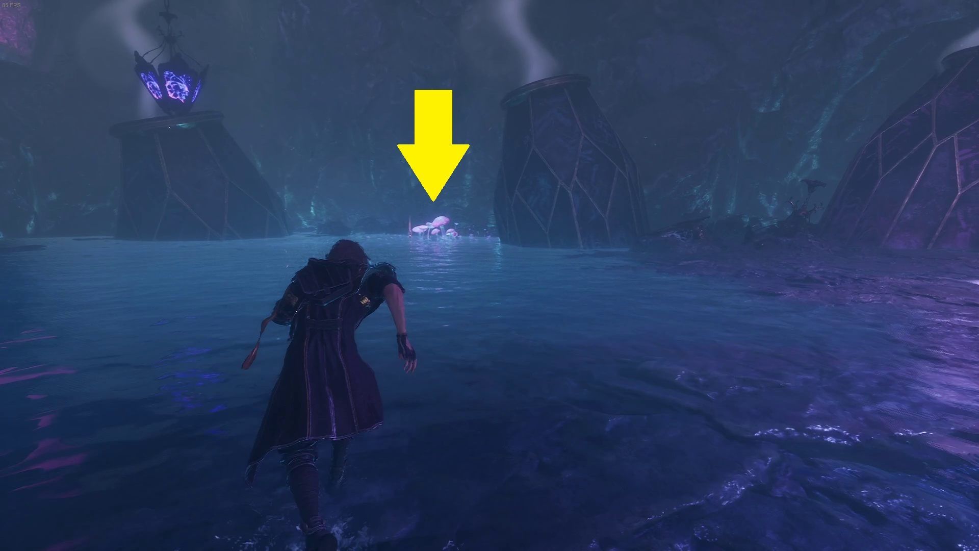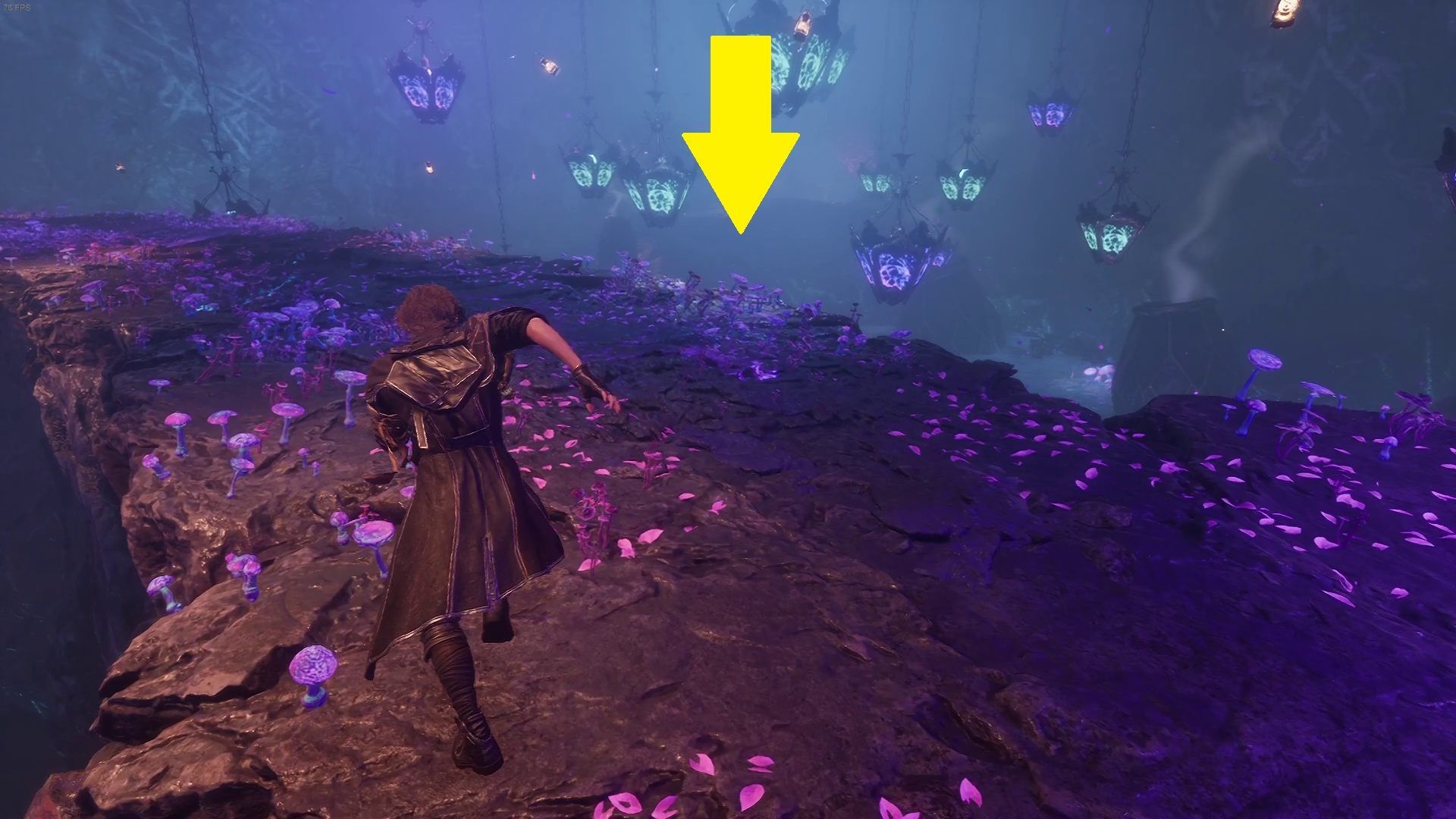 Enter the location and go through the tunnel. Once you reach the stone bridge, jump off the right edge. On the edge of a shallow reservoir, you will find glowing mushrooms that you can pick up. Take them with you.