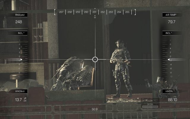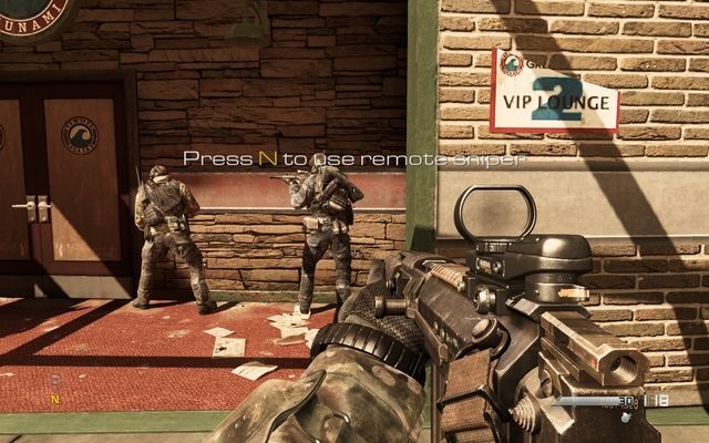At the beginning, you use a remote sniper rifle. You have to find a captive soldier. You can zoom sniper rifle. When you find your target, zoom to make a closer look.