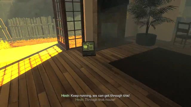 Right after you return onto the ground and dash out of the house with Hesh, turn your attention to the house on the right of the street. Dash into it - inside there is the laptop with the intel data.