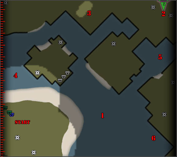 Use them to attack the most important targets (marked with green pointers) in enemy bases. You can also send groups of tanks (9 units) with Chronosphere straight into the enemy camp. In the first order, focus on the north base [3] - the Japanese have his super-weapons there.