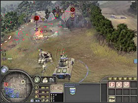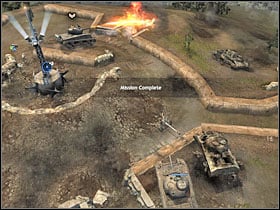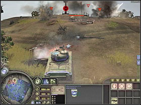 After razing the terrain to the ground with your artillery barrage you may find no good cover for your soldiers on that hill so help them with Crocodile tank burning all in sight. [19] All the time watch out for enemy rockets (they will fall down to the last moment probably) and for Goliat mines that may get under your tanks even now - remember to keep the engineers near your tanks.