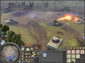 Only then you can move on the hill with infantry and tanks, taking a route from captured a moment ago small german base, along the northern edge of a map, then turn right to attack hill 192 from the north. Try to coordinate your action so to have your forces climbing up the hill just after the artillery barrage, when Germans are pinned down - start moving when artillery is still shelling their positions, but watch out for german rocket artillery barrage! Knock out with your Shermans single PzKpfw IV tank which may occur on the hill, burn with Crocodile bunkers that survived your barrage (especially this one which can pin down your infantry rushing the hill). [18]