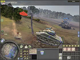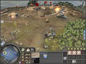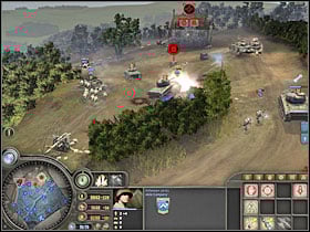 But before you start your final assault on hill 192 it's wise idea to make some reconnaissance, to reveal some german positions on it. You can do that job by sneaking with your camouflaged and shooting only on your command sharpshooter or driving uphill with one of your tanks - scout around, then use your off-map artillery to knock out enemy AT guns and bunkers. Just remember to seize nearby points to increase the range of your arty. Your engineers should also have a possibility to set up some howitzers (if you earned and spent enough command points) - don't hesitate to use this weapon against Germans on hill 192. Sherman Caliope with his rocket launcher is also a good tool of artillery preparation (barrage). Shortly: shell the Krauts on hill 192 with all you've got before you attack them! [17] Especially try to destroy mentioned earlier two AT guns Pak 38 (pointed to the narrow passage south-east; so don't push your tanks that way) and two concrete bunkers.