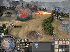 If heavily damaged Pz IV tank is trying to escape to the strategic sector further to the north (at the left edge of a screen) take a risk of pursuing him with your Sherman and try to finish Jerry - otherwise german Pioneers will repair Pz IV in the twinkling of an eye (game cheats). Repair your vehicle with own engineers following it. Shell with Caliope's rockets german strategic point situated near the road leading to the north. [5]