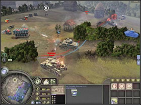 Note: in this mission you may have some problems with enemy rocket artillery shelling you when coming close to the hill. German remote controlled self-propelled Goliat mines can also be annoying - enemy Pioneers send them and detonate under your tanks. If you want to complete additional objective in the designed time limit don't move with your forces over the whole map, just concentrate on the assault along the left (west) edge of a map first, then turn north-east and capture small german base near the northern (top) edge of a map. Upgrade captured building to the barracks, bombard with all you've got hill 192 first and assault it finally from the north (do some passages in hedgerows with bulldozer if necessary).