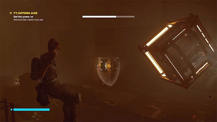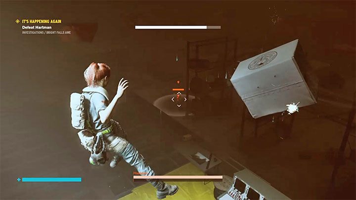 There will be darkness in the room, because Hartman will sabotage two of the four generators available in the room. In this case, your task is to find the inactive generators and use telekinesis to re-place the power cores next to them. This will light up the room. You'll be able to resume the battle and once again launch an attack on the boss.