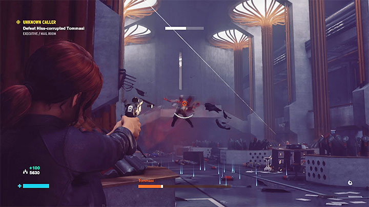Shoot at the boss from places that make you a difficult target to hit. When Tommasi loses a little bit of health, he will be joined by flying and exploding beasts. Be sure to use focus on them and try to kill them as soon as possible. You can attack them with weapons or, e.g. telekinesis. Be careful while you are focusing on the beasts and stay out of the sight of the boss.