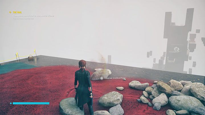 Levitate above the abyss and watch the message from Marshall. You need to reach the area shown in the image above. The floor is going to collapse under Jesse, and it can't be prevented because it's a part of the mission. The heroine will enter Astral Collision location. The further part of the mission takes place in an Astral Plane.