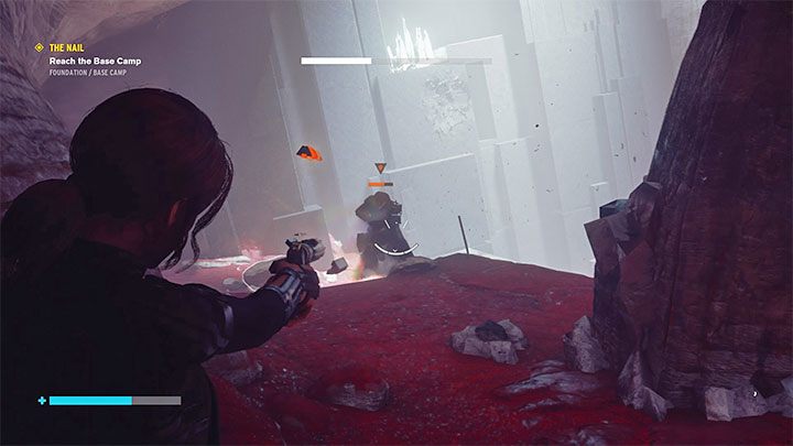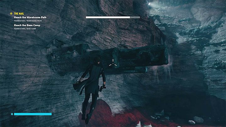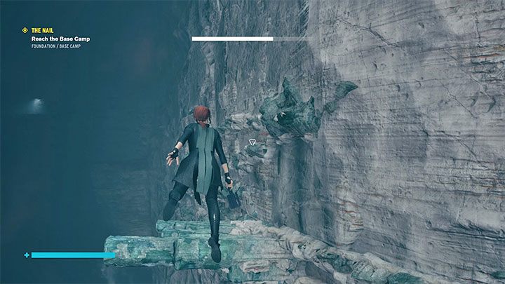 You will reach the Base Camp location with bridges hanging over the chasm. Start with destroying new Hiss Nodes. In the location shown in the picture you can extend a ledge. Reach it and then fly to the bridge located above.