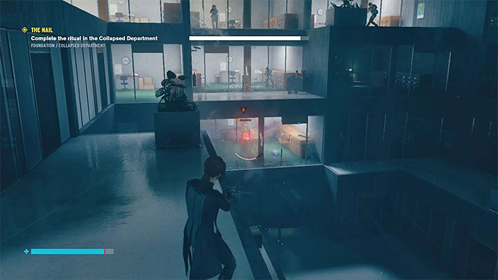 On this page of our game guide to Control - The Foundation you can find the first part of our detailed description of The Nail story mission. The following walkthrough describes, among other things, how to solve the elevator puzzle in the Warehouse, how to complete a ritual in the Warehouse, how to solve the generators puzzle in the Collapsed Department section and how to complete a ritual in the Collapsed Department section.