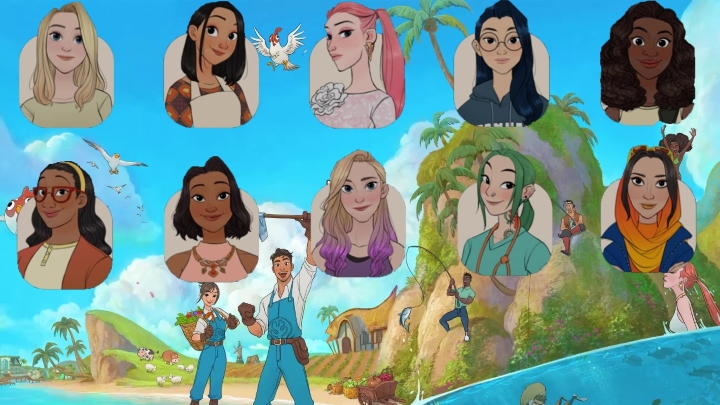 List of brides with whom you can romance in Coral Island (listed at the top from left):