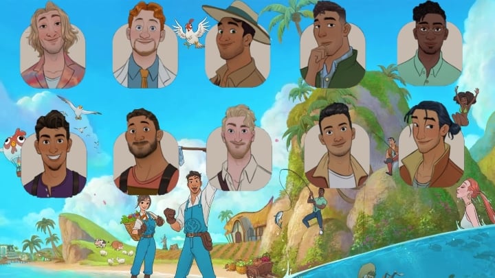 List of bachelors you can romance with in Coral Island (listed at the top from left):