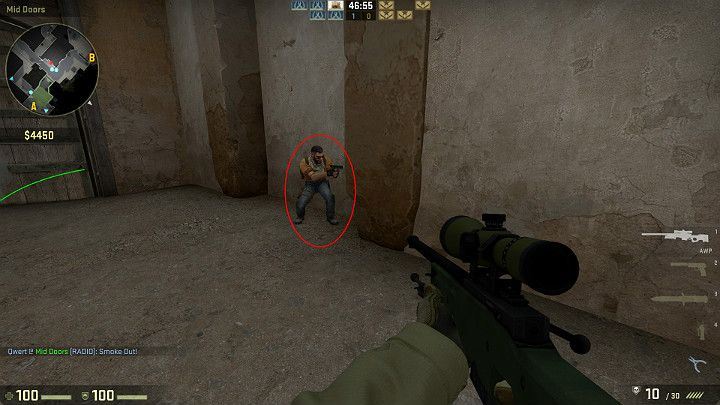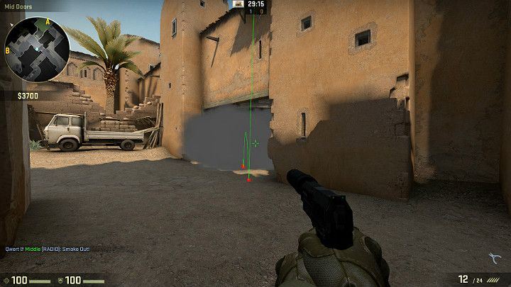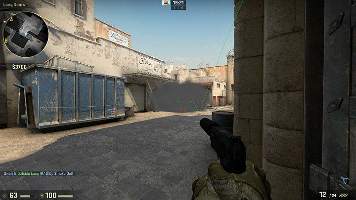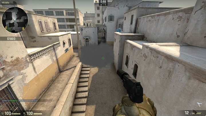 The smoke screen should cover the corner where one of your opponents is likely to hide. It is especially possible at the beginning of the round, when Counter-Terrorists are defending the passage to bombsite A.