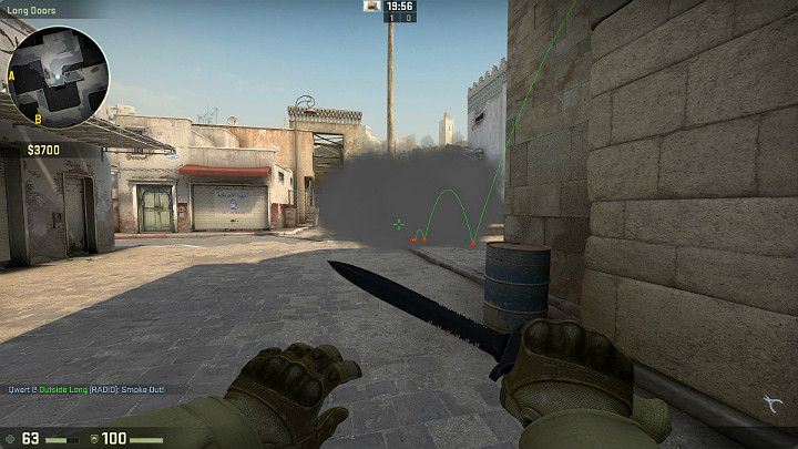 If you managed to do it right, the grenade will explode exactly in front of the Counter-Terrorist tunnel. The smoke screen will greatly limit your opponent's field of view.