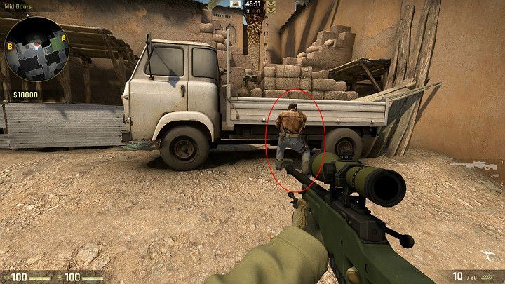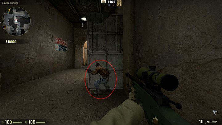 The Terrorist Spawn Zone is the favorite location of all the players using AWP. There is always someone who will keep an eye on the passage in the distance and on Counter-Terrorists trying to reach bombsite B. You need to have quick reflexes if you want to hit any opponents. A good solution is to aim slightly at the door and fire right after you spot an enemy. This is possible because AWP bullets have great penetration power and can easily eliminate players located behind similar obstacles.